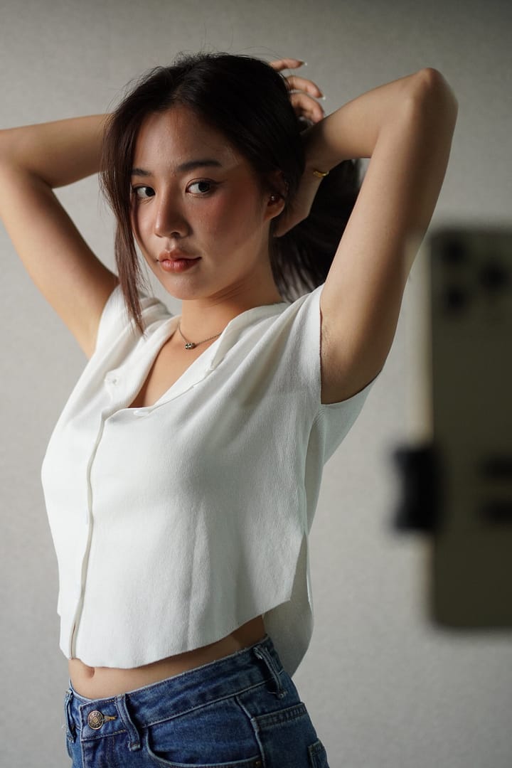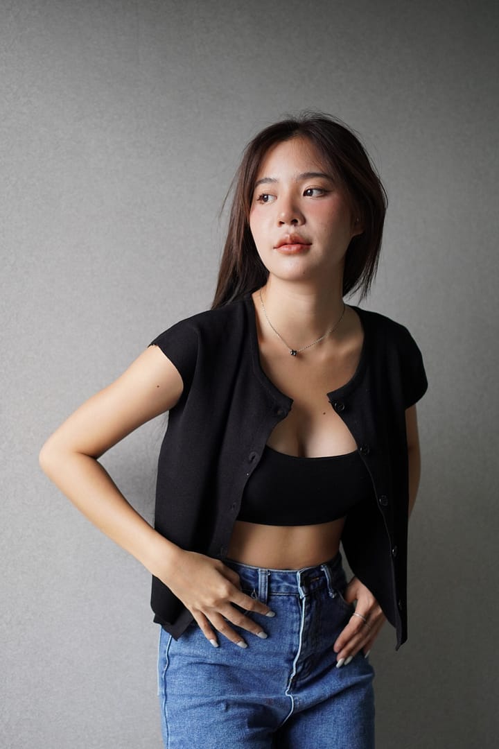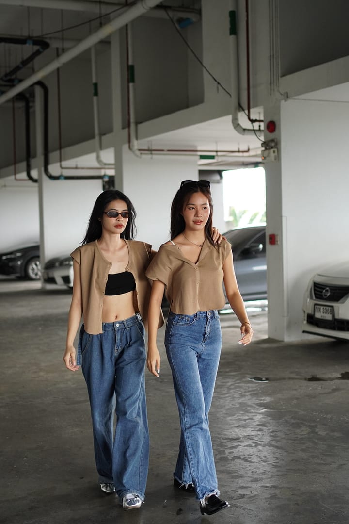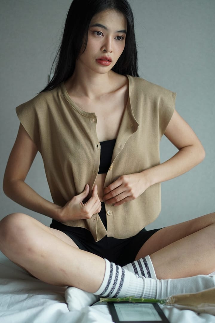 Kinda top – เสื้อแขนกุดทรงหลวม ทำจากผ้าทอทั้งตัว ตัดโค้งตัวยูชายเสื้อ และผ่าข้าง ช่วยเสริมให้สาวๆมีทรง สวย น่ามองมีสเน่ห์ จะใส่แบบปิด หรือแบบเปิดไป hangout ได้ทุกกิจกรรมค่า
