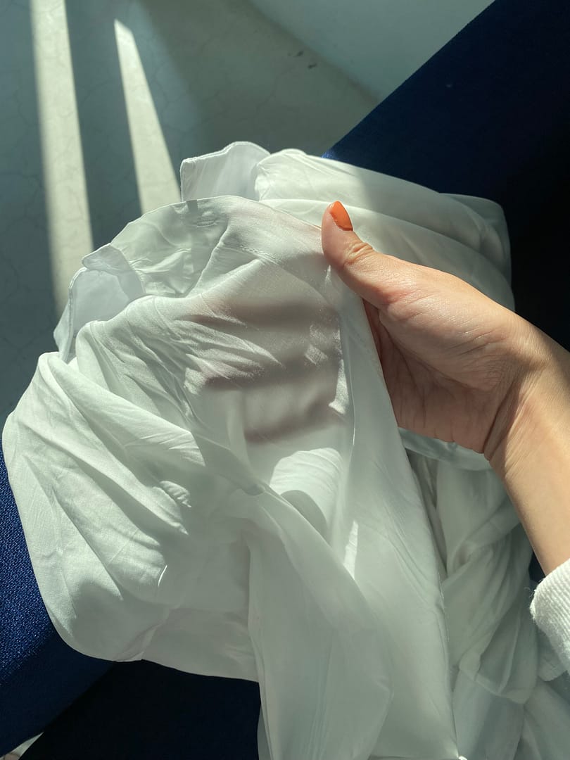 ดีเทลแบบชัดๆ เสื้อเชิ้ตซีทรู ทรงเบสิค คอปก กระดุม เราตัดเย็บอย่างดี เนื้อผ้าลื่น บางกำลังพอดี ทอแสงแดดแล้วสวยมากกก 💘